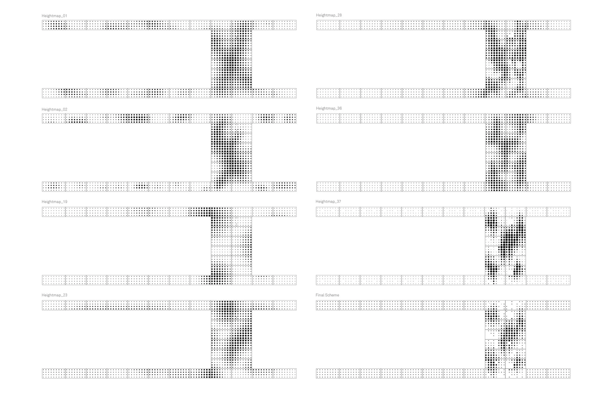 Our design focused on breaking the space into a series of zones, perimeter, core and interstitial space. These zones helped organize the office space into distinct categories, placing workers in the perimeter, democratically allowing for everyone to have a view of the highline and the surrounding city. The core holds all the storage, and functions of the building that do not need exposure to the surroundings. Finally the interstitial zone functions as a creative and breakout space, where conference rooms and pinup space is placed. The ceiling in this area is treated with a lightweight mdf panel system that through scripting reflects the patterning of the highline, as well as integrates lighting, fire suppression and air supply.